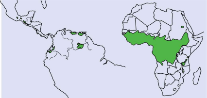 Distribution of onchocerciasis in Latin America, Africa, and the Arabian Peninsula
